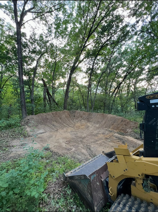 Skid Steer mounted mulching head capable of clearing trees and brush up to 6” in diameter. Fast and efficient way to clear undesired underbrush and vegetation. Leaves a flat level layer of mulch that easily decomposes. Mulching is faster and more efficient than hand cutting, dragging, piling, chipping or burning. Other methods can the leave the soil bare and vulnerable to erosion damage, compacts the soil, can require special permits and is more expensive. Forestry Mulching is ecologically friendly because it leaves the topsoil in place and returns the nutrients of the mulched vegetation back to the soil. Mulching the material in place with one process and with only one machine operator allows us to keep our costs lower when compared to traditional methods.